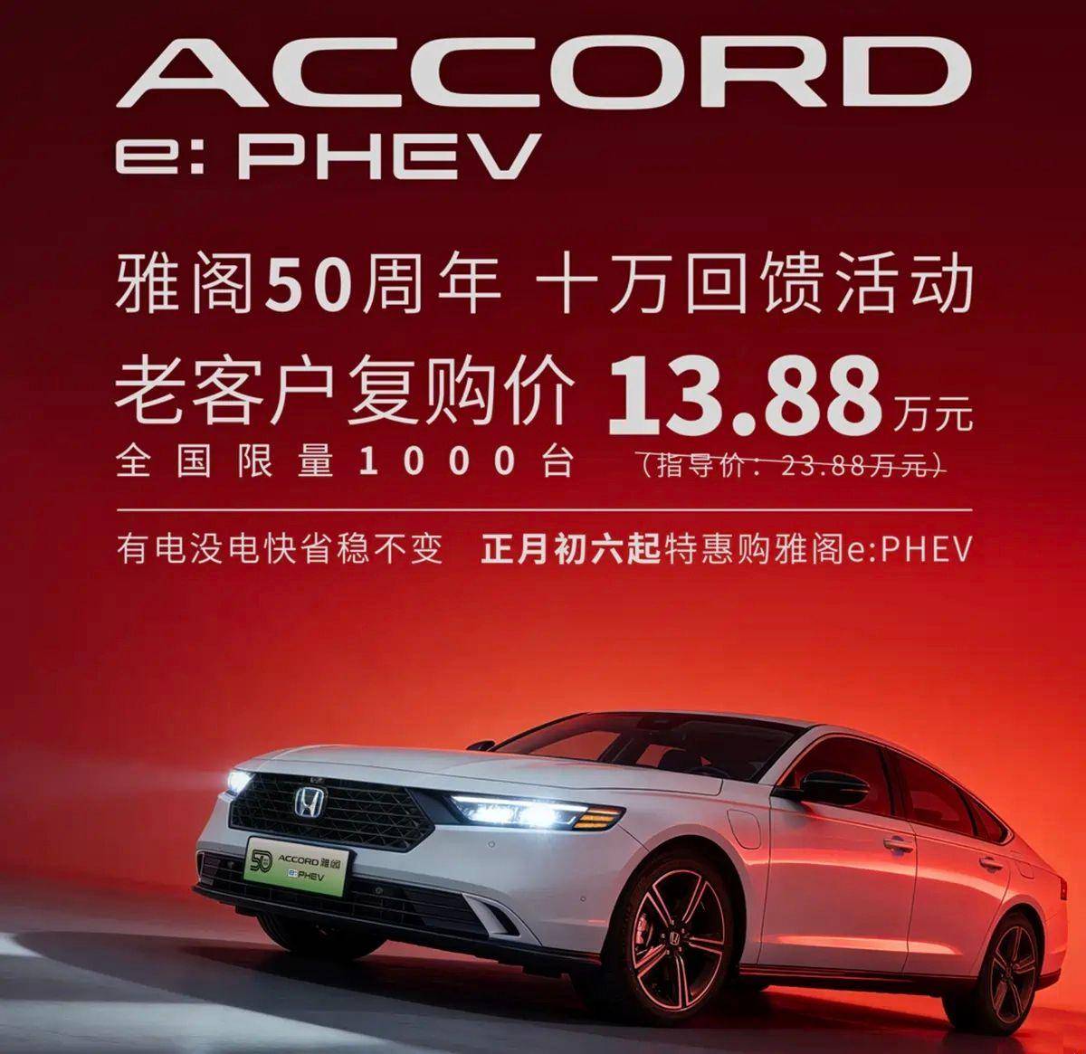 伯仲们,我确凿没念念到啊!农历新年正月初六,广汽本田竟然推出了一个雅阁50周年的十万回馈活动,而活动的实质也十分“劲爆”,那等于为老客户复购雅阁e:PHEV(以下简称插混版雅阁)车型给到了一个13.88万元的超廉价钱。