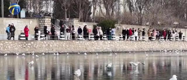 某旅行团导游 示意,现在正赶上冬天,四月份之前,海鸥还没飞走。他这两天一直在带团,宾客能比往年增多一半。
