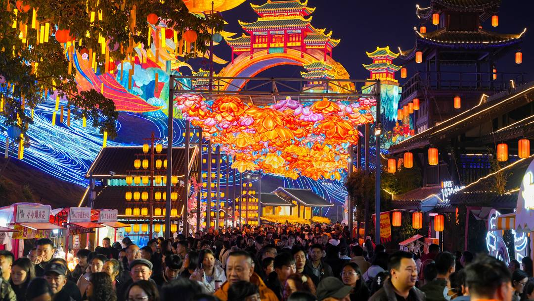 在自贡灯会的带动下,自贡夜间经济迎来茂密发展——燊海井的初度亮灯,让旅客千里浸式体验“盐韵夜游秘境”;自贡方特“龙灯花火年”步履推出花车巡游、火壶火刀、无东谈主机秀和烟花秀等夜间节目,数百架无东谈主机变幻成秀美的飞马图案,以其私有的夜场体验成为年青客群的“心头好”;沿滩区龙湖公园的音乐喷泉灯光秀成为市民夜间失业的热门打卡地;“夜游釜溪”新春嘉年华将非遗演艺融入水上夜游显露,旅客在游船上不雅演、两岸互动,夜色与灯光逸趣横生。