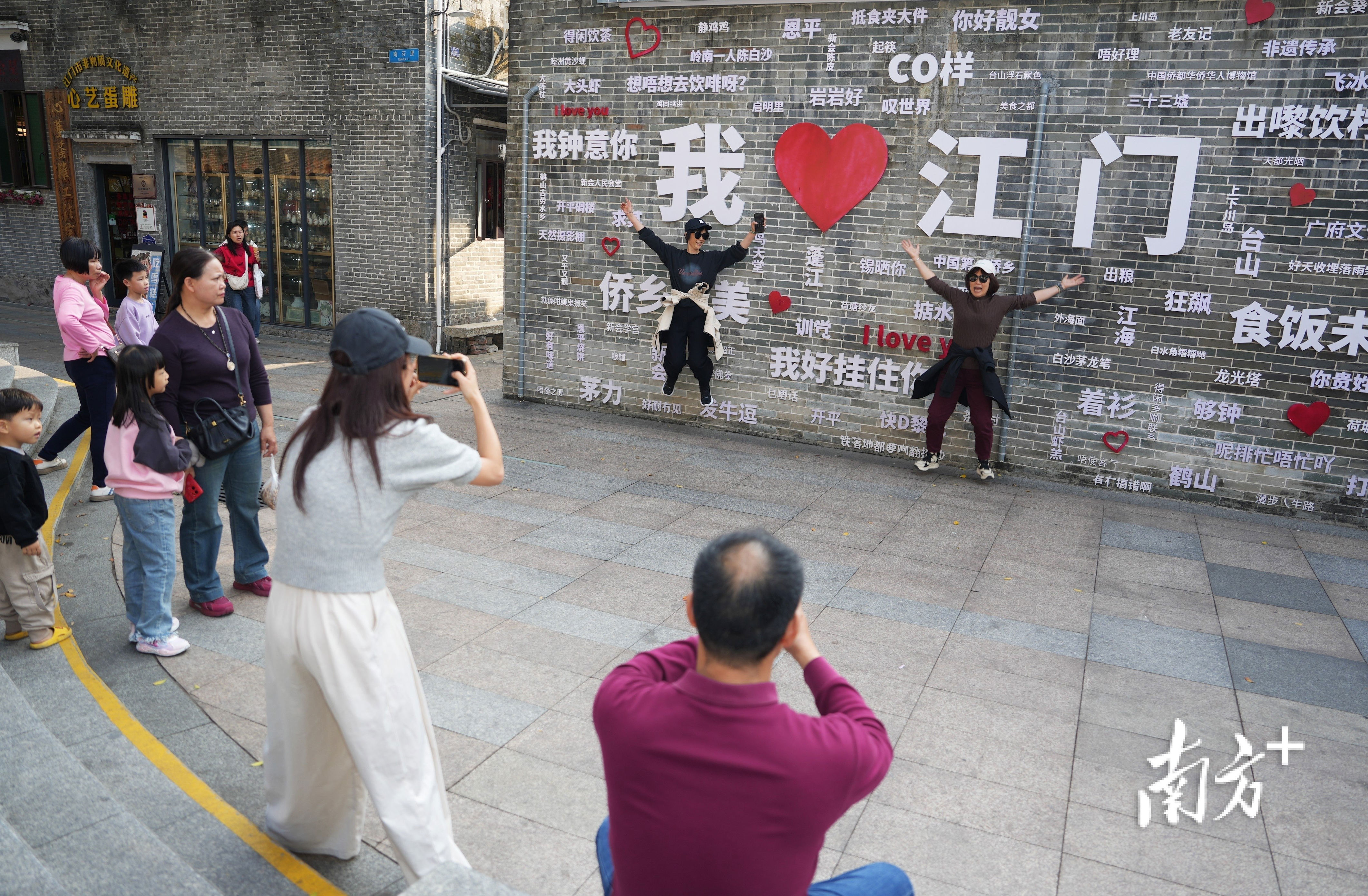 旅客到蓬江游玩,诚然要打卡“我爱江门”顾虑墙。 杨兴乐摄