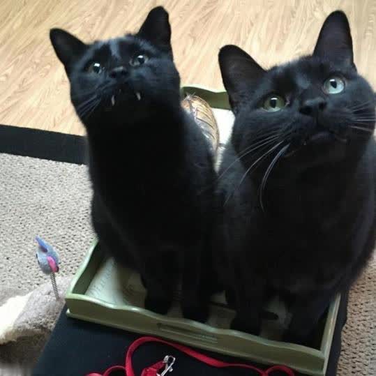一年后,妮可又领养了另一只黑猫Bean。同为黑猫的Monk和Bean一见也曾,当今面容好得就像亲昆仲雷同!