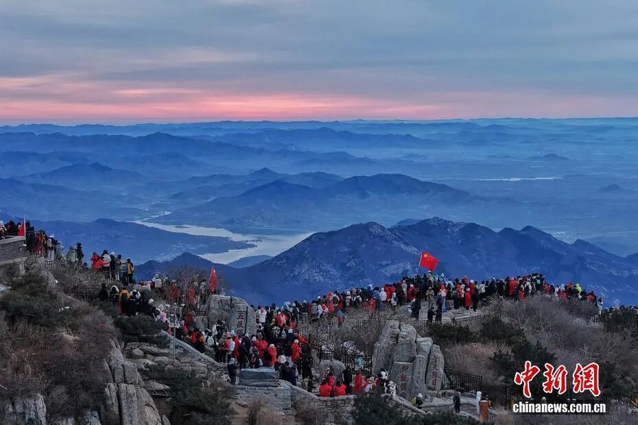 1月1日,山东泰山,游客登高望远。图片开首:中新网 陈阳 摄