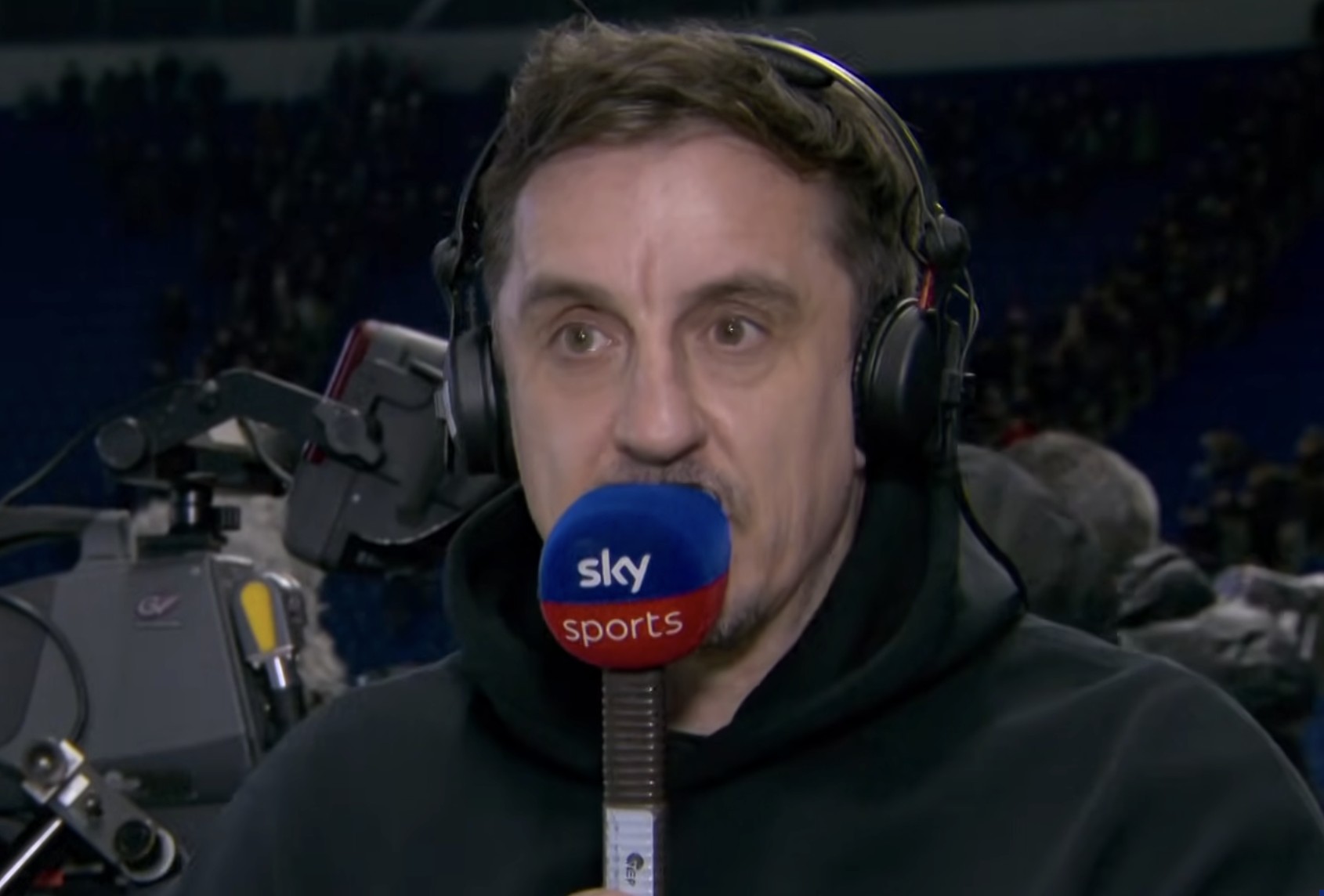 北京期间2月24日,英超第27轮,埃弗顿0-1曼联。在太空体育的播客节目中,内维尔对本场比赛进行了分析。