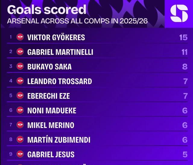 本赛季哲凯赖什也曾在各项赛事代表阿森纳打进15球,瑞典东谈主是队内第一弓手。
