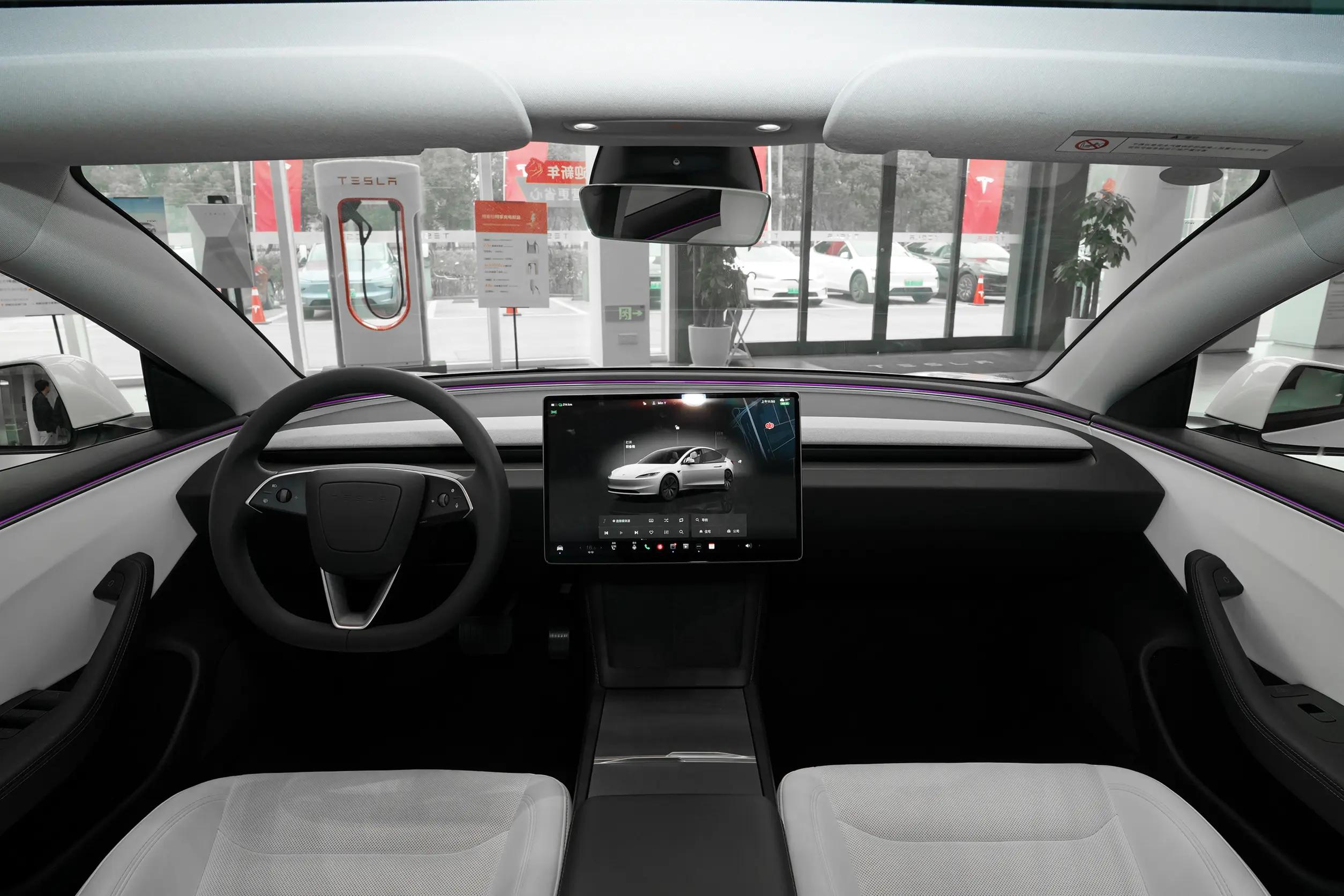 特斯拉model 3车内额外极简,笔直的中控台莫得过多确立,仅配备一块悬浮式中控屏和三辐式场合盘,也被网友戏称为“毛坯房”。新车使用屏幕换挡,不外关于部分老司机而言,可能需要花时辰再行适合。