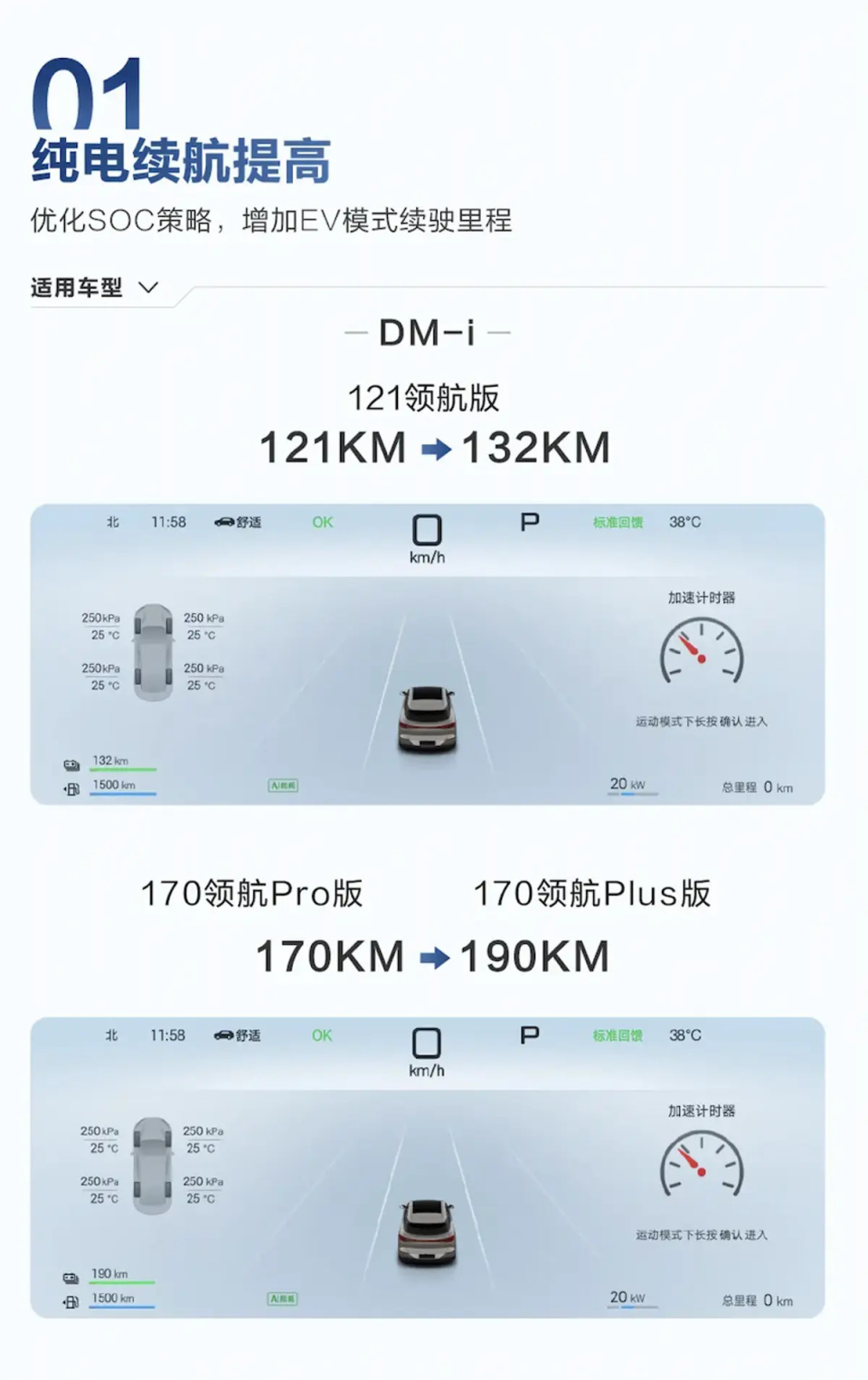 这还没完,前不久海狮06刚作念过一轮OTA升级,部分车型续航如故提高:121领航版从121km增至132km,170领航Pro版和Plus版从170km提到190km,开启长续航功能后还能进一步膨大到205km。比亚迪这波操作,照实是“听劝”的厂家。